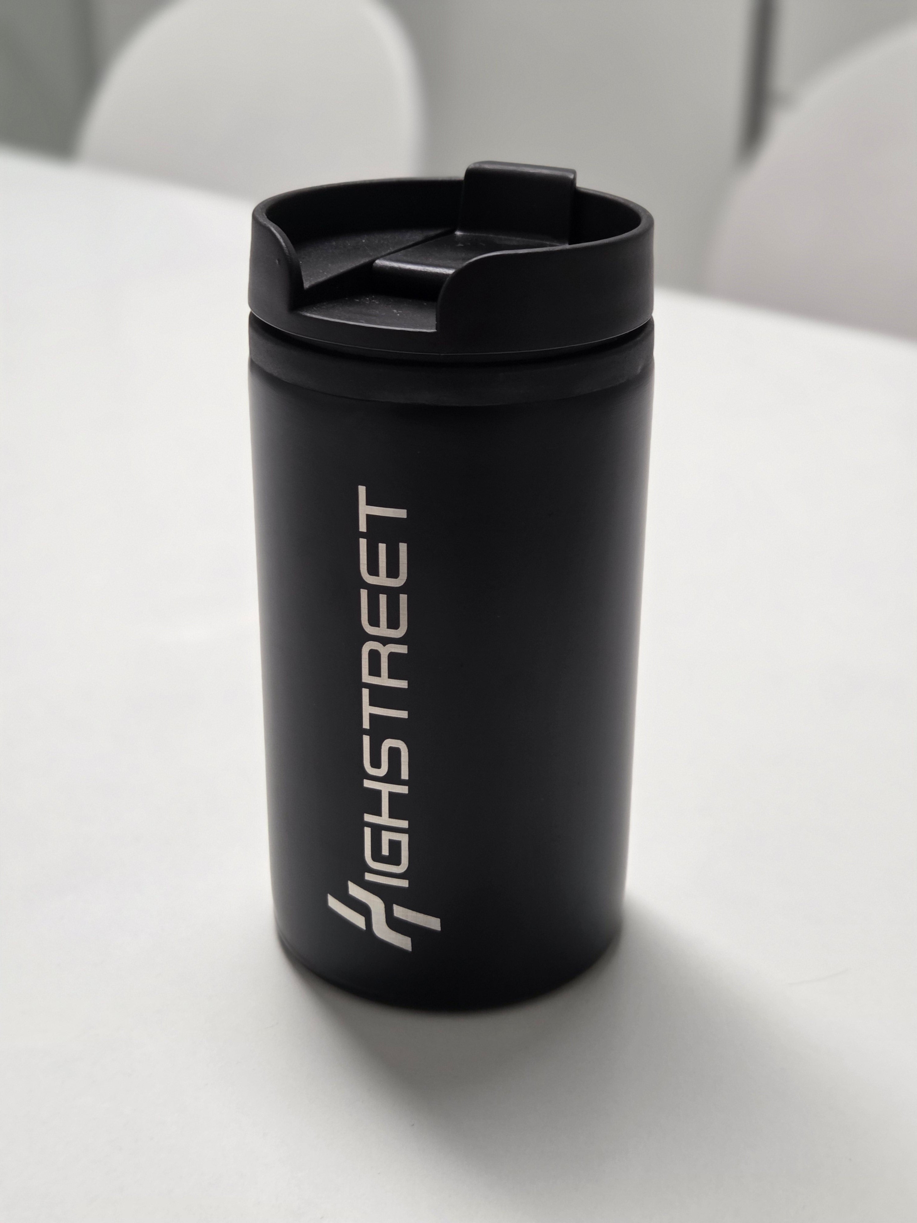 Der Thermobecher ist ideal zum Transportieren und hält das Getränk lange kalt/warm. Das HighStreet-Logo wird in das Gefäß per Lasergravur veredelt. Fassungsvermögen beträgt 250ml. Aufgrund hochwertiger Verarbeitung ist der Becher auch auslaufsicher.